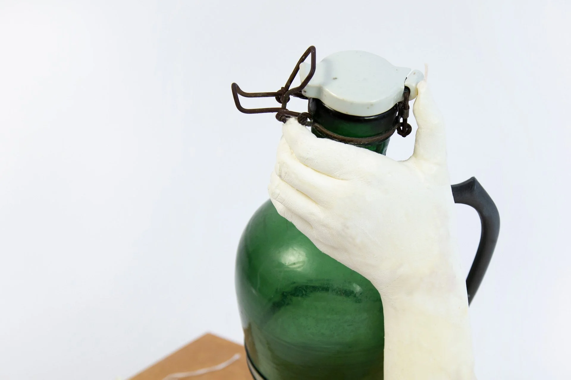 In recognition of the four generations who have held this bottle in their care, Singapore architect and designer Tzen Chia has mounted the bottle onto a life-size cast of the owner’s hands. Securing the cracks rather than mending them, the use of wax hints at the ephemerality of ownership compared to the durability of the object itself.