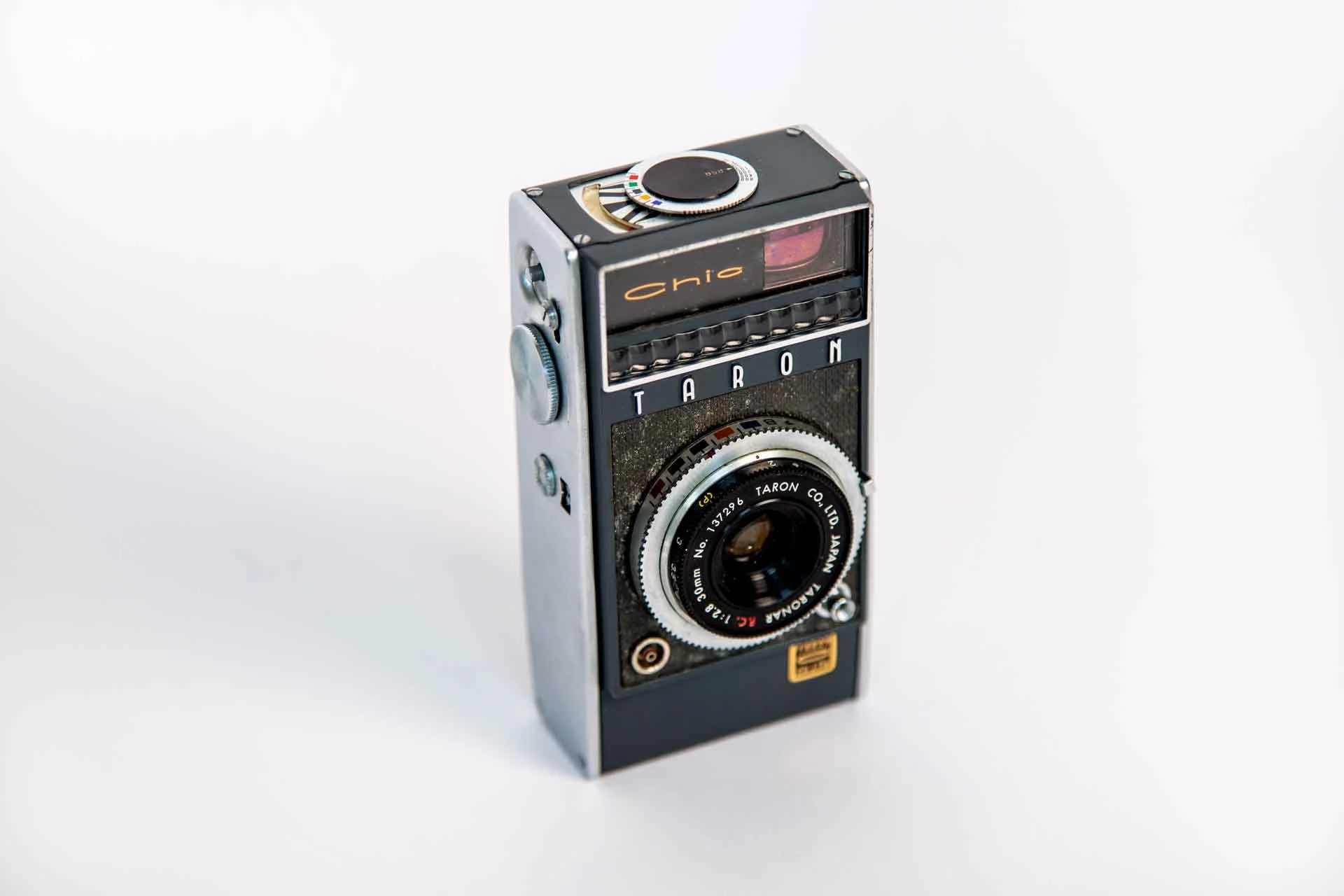 Designed to be held vertically, this Taron Chic camera was originally released in Japan in 1961. It belonged to Rachael’s grandmother, who retired early to embark on a life of travel with her husband in a campervan from 1986-2008.