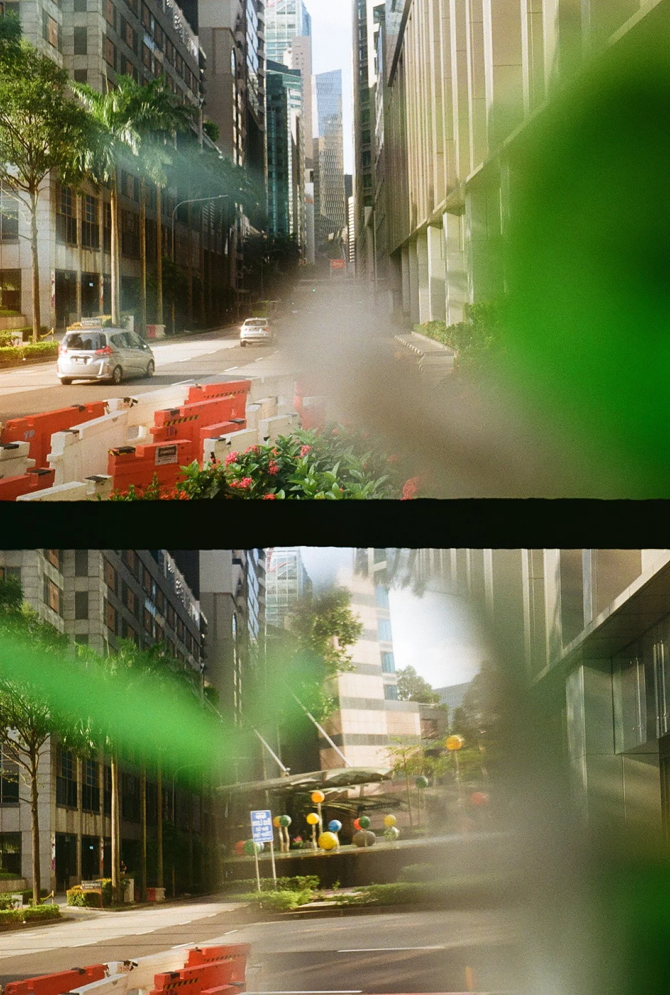 Architect and designer Syafiq Jubri has restored the camera by mending the mechanical fault in the gear assembly. Challenging the idea of the camera as a ‘perfect translator of light’, he has added a rotating mirror that captures blind spots and a green feather that ‘tickles the light’ to give the photographs a more playful and spontaneous character. These test images were taken by Jubri in Singapore.